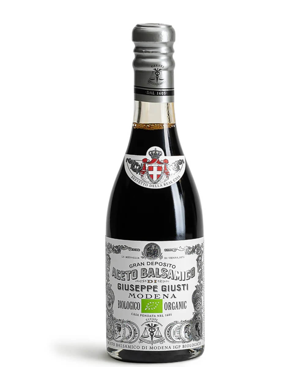 Giustis økologiske balsamico eddike er lavet på økologisk druemost og økologisk vineddike fra bæredygtig produktion og det gamle rotationssystem kendt som "“Rincalzi e Travasi" på italiensk indgår i en del af produktionsprocessen. Resultatet er en velduftende og krydret balsamico karakteriseret ved et højt syreindhold, der balanceres af mostens sødme. Den økologiske balsamico kan fx anbefales til salat, kødretter, saucer.