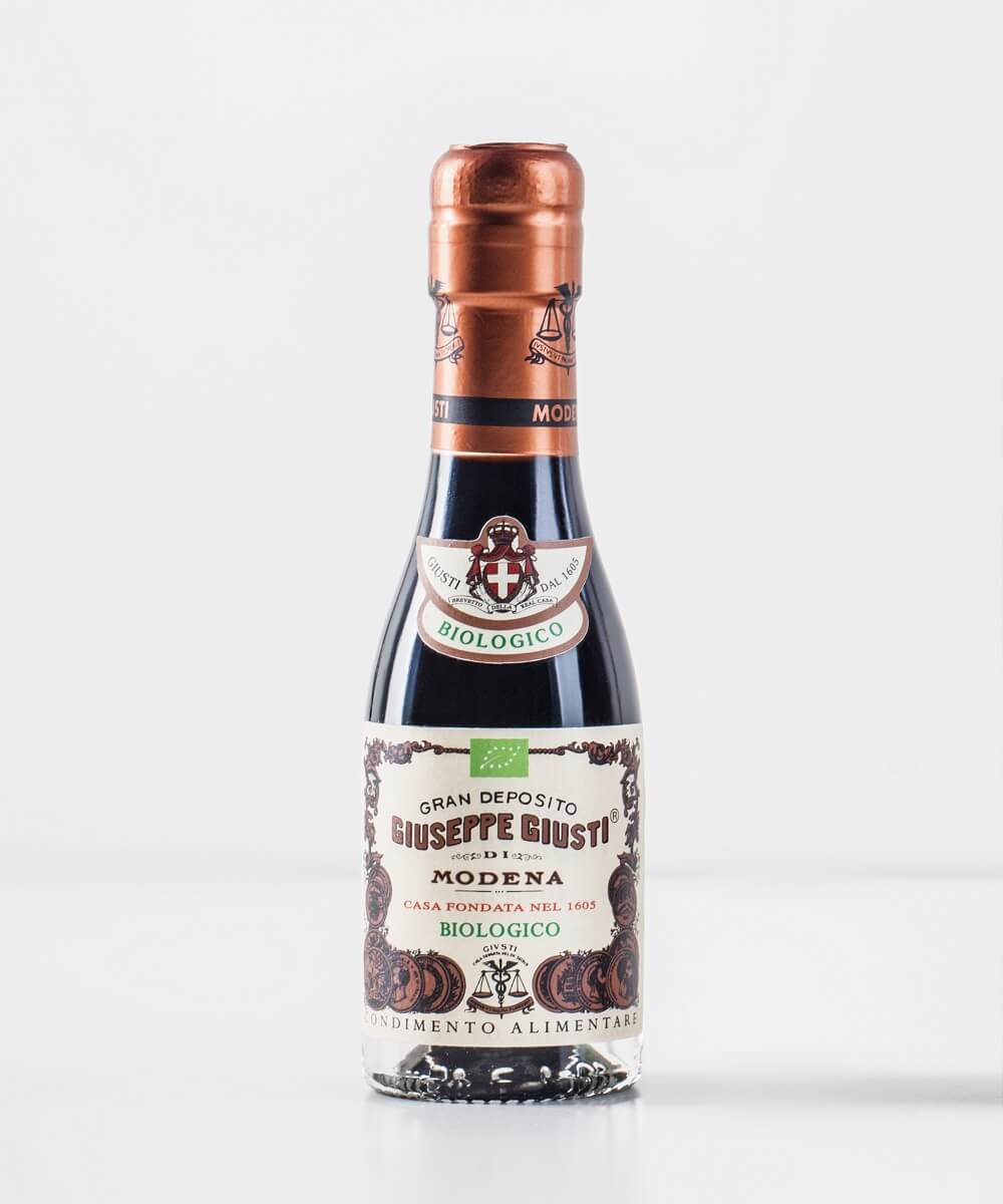 Giustis økologiske balsamico eddike er lavet på økologisk druemost og økologisk vineddike fra bæredygtig produktion og det gamle rotationssystem kendt som "“Rincalzi e Travasi" på italiensk indgår i en del af produktionsprocessen. Resultatet er en velduftende og krydret balsamico karakteriseret ved et højt syreindhold, der balanceres af mostens sødme. Den økologiske balsamico kan fx anbefales til salat, kødretter, saucer.